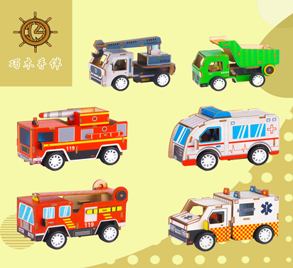 Various Styles Assemble Pull-Back Vehicle Eco-friendly Creative Design Intellectual Development Wooden Toy for Kids