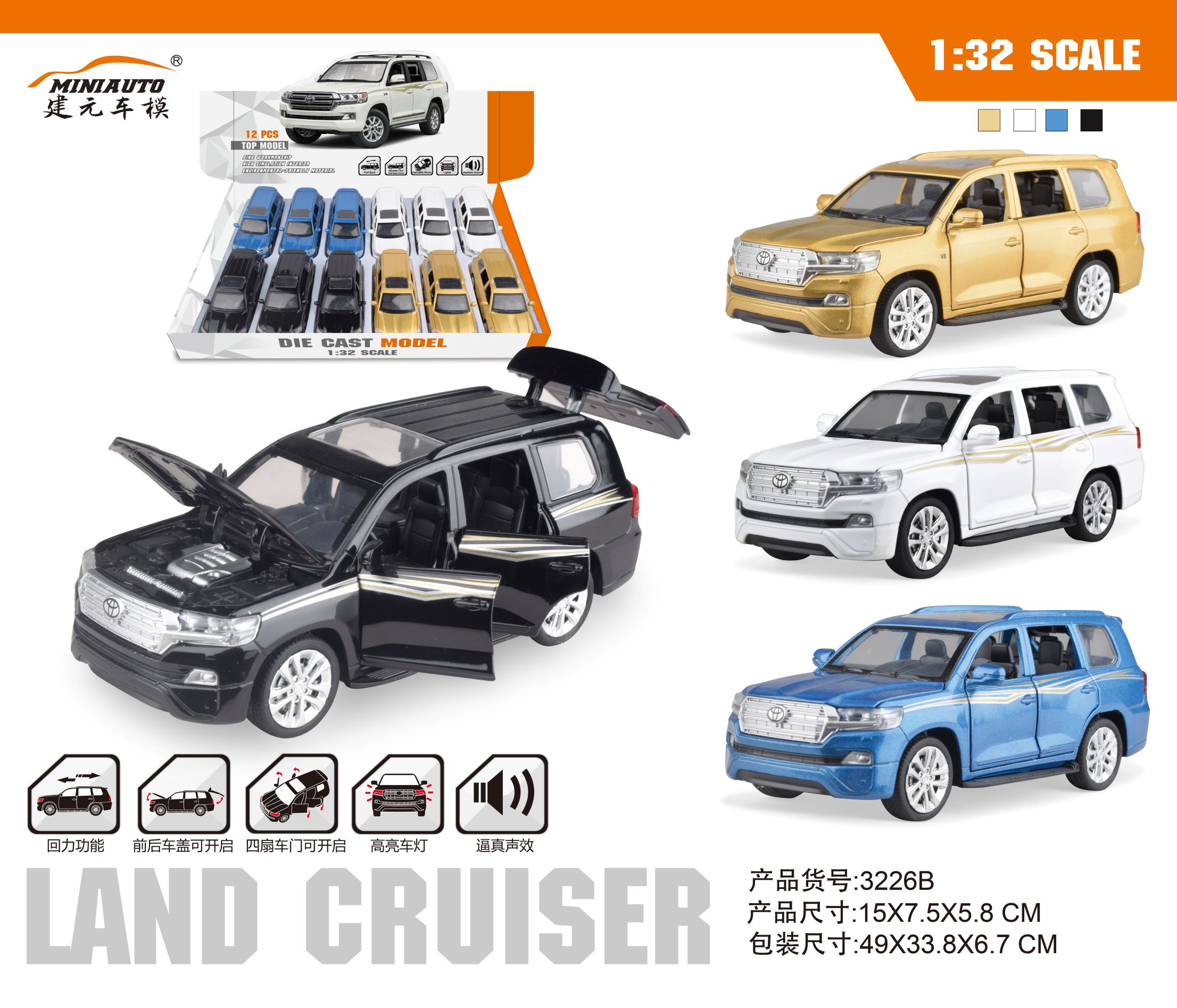 2022 newly released SCALE 1:32 AUDI R8 Spyder officially licensed die-cast toy car wholesale from China toy factory