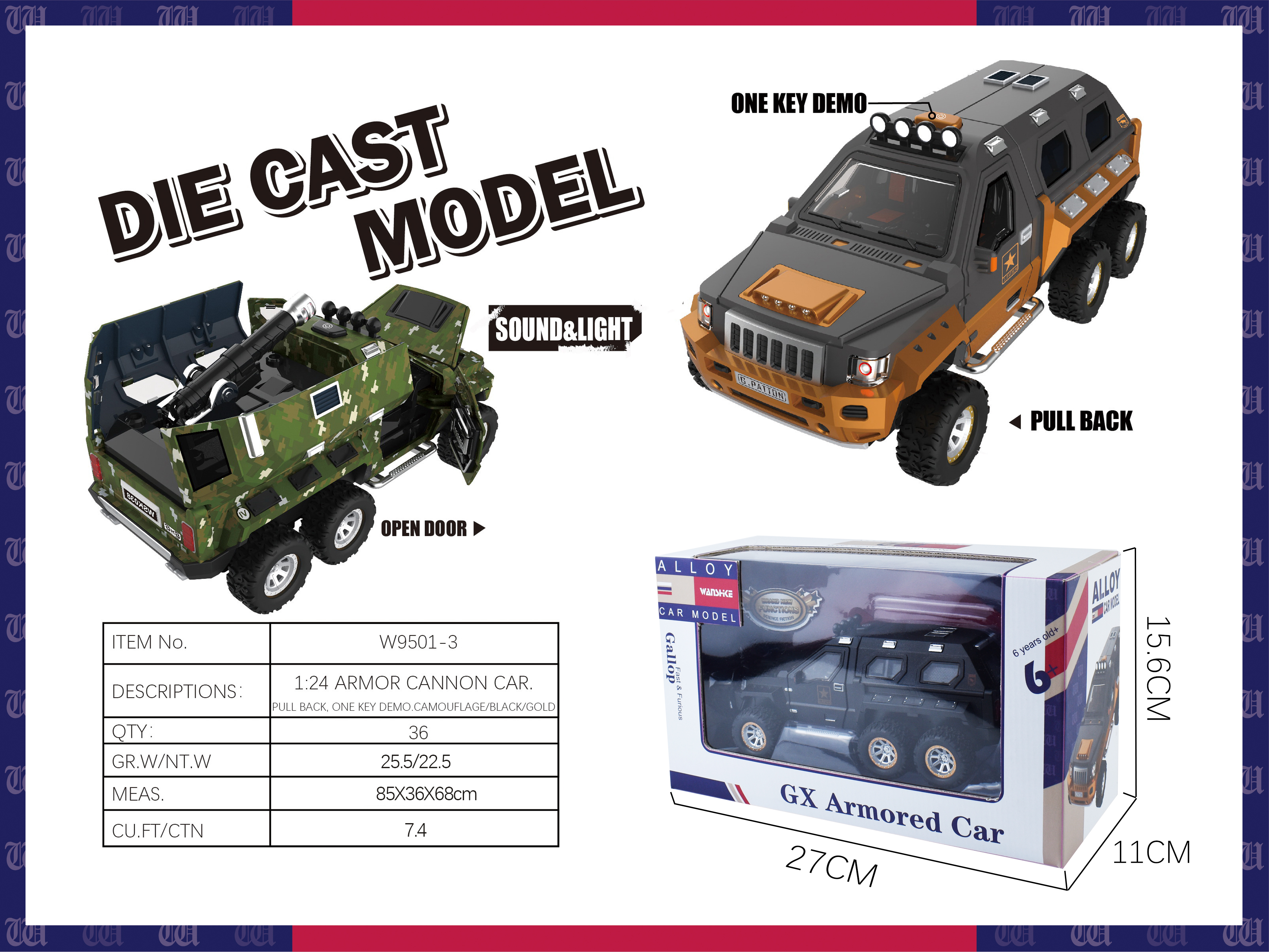 1:24 DIE CAST ARMOR CANNON CAR