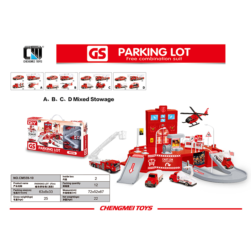 Parking lot with 4pcs metal car- fire