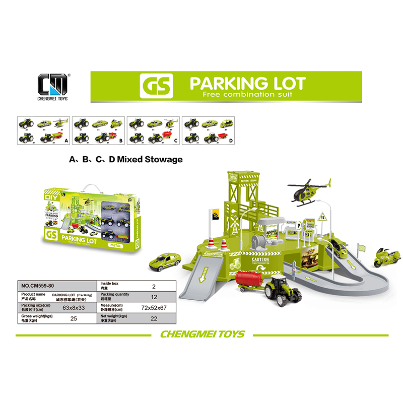 Parking lot with 5pcs metal car- farmer