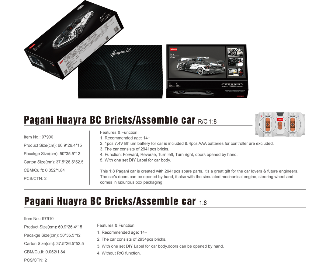 Pagani Huayra BC Bricks/Assemble Car (1:18)
