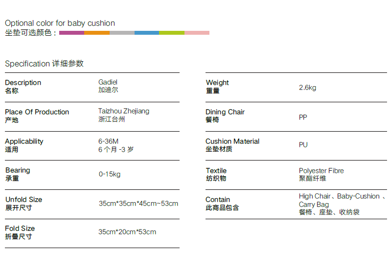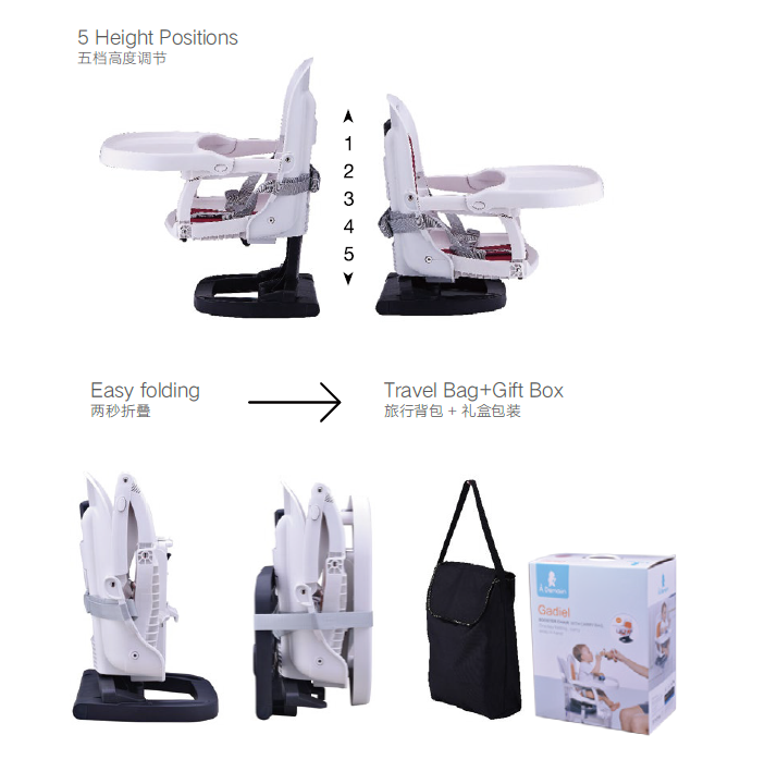 Gadiel 2.0 baby highchair easy compact fold for kids ages 0-5 years wholesale from China factory