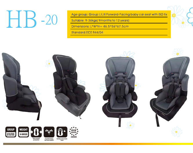 HB-20 Gr. 1/2/3 9-36kgs forward-facing baby car seat for children age 9 months-12 years wholesale from China factory