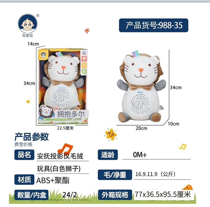 Soothes Projector Plush Toy (White Lion), Soothing Toys