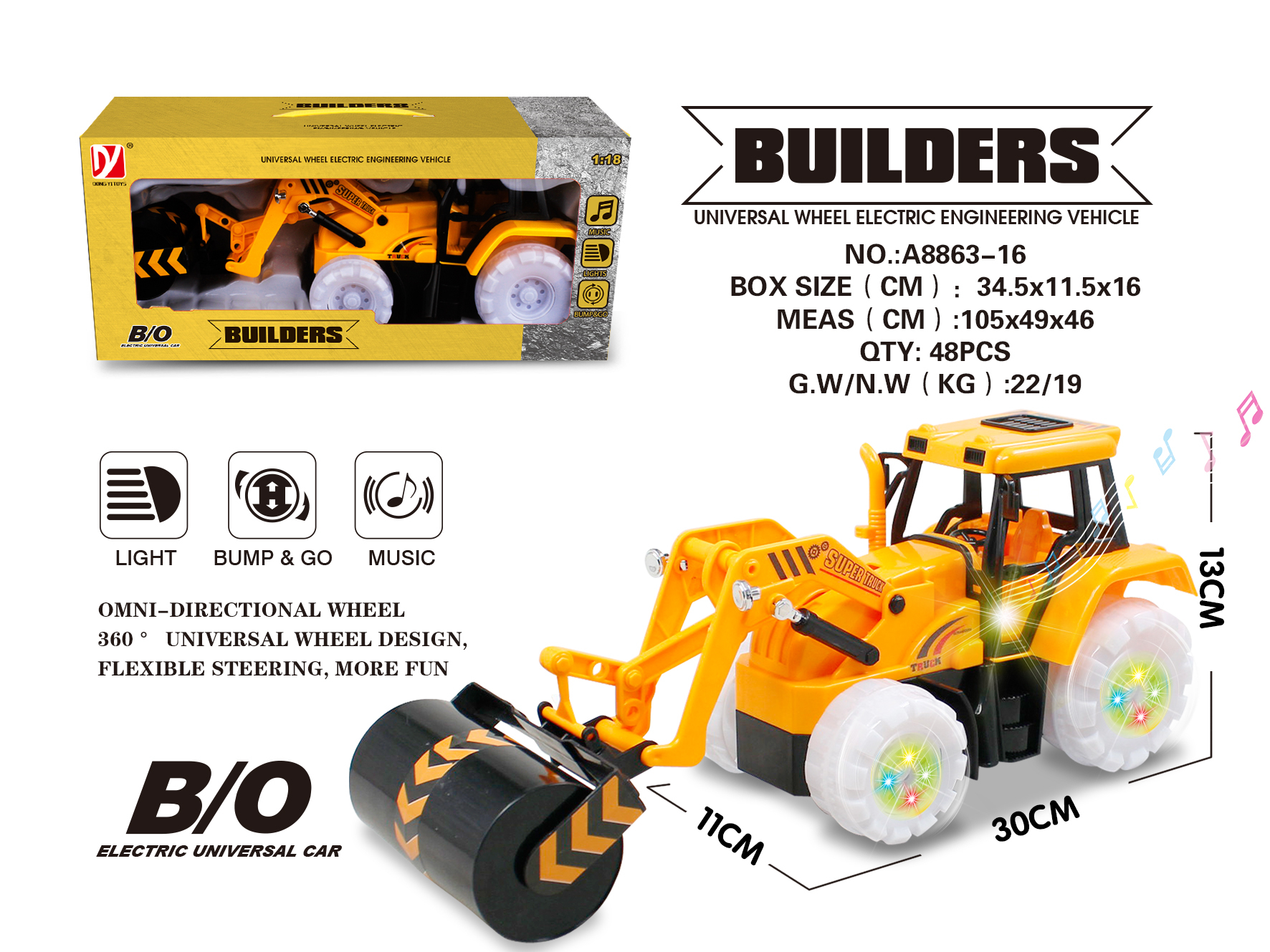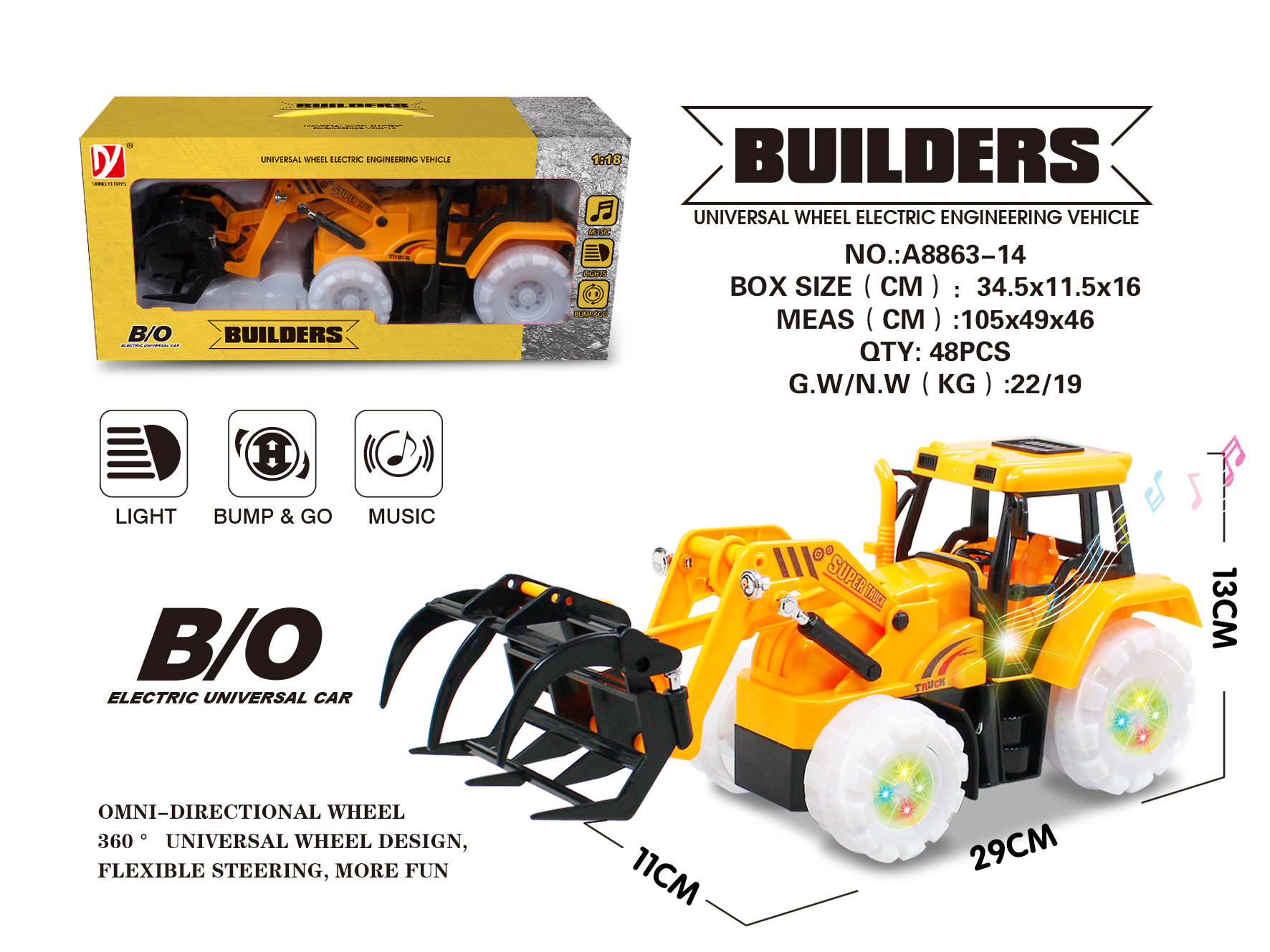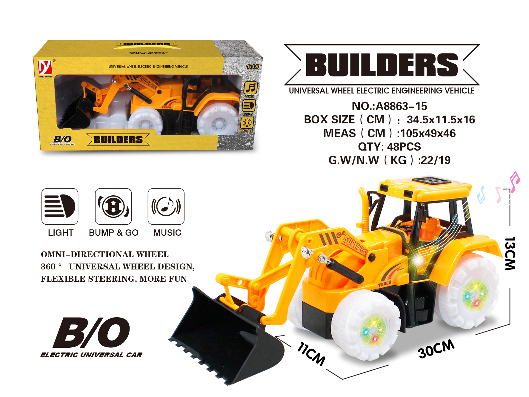 Omni-directional Wheel Non-toxic ABS Light and Music Several Channels Quality-guaranteed 360° Rotating R/C Engineering Vehicle