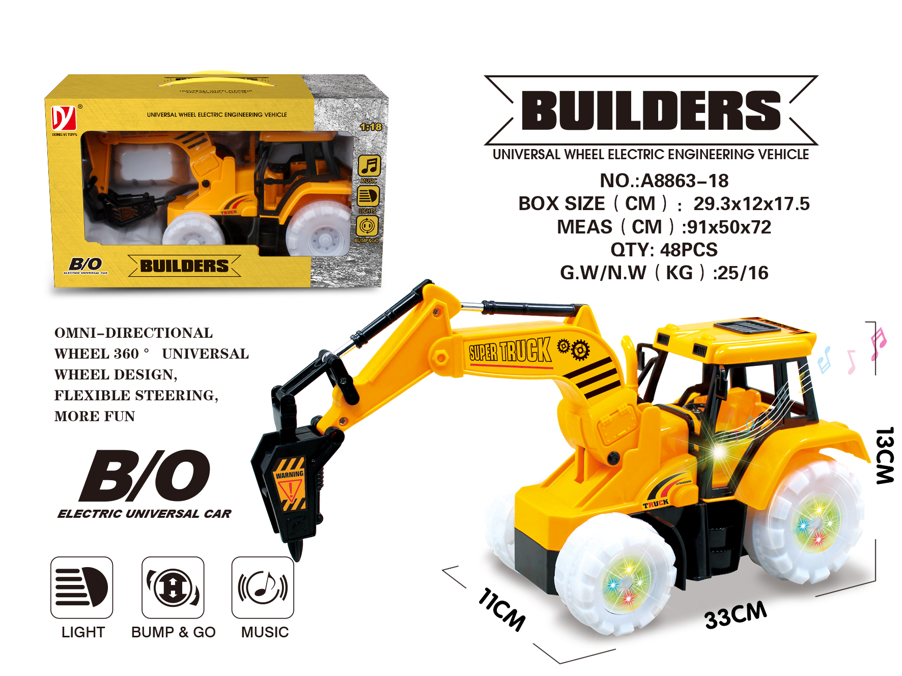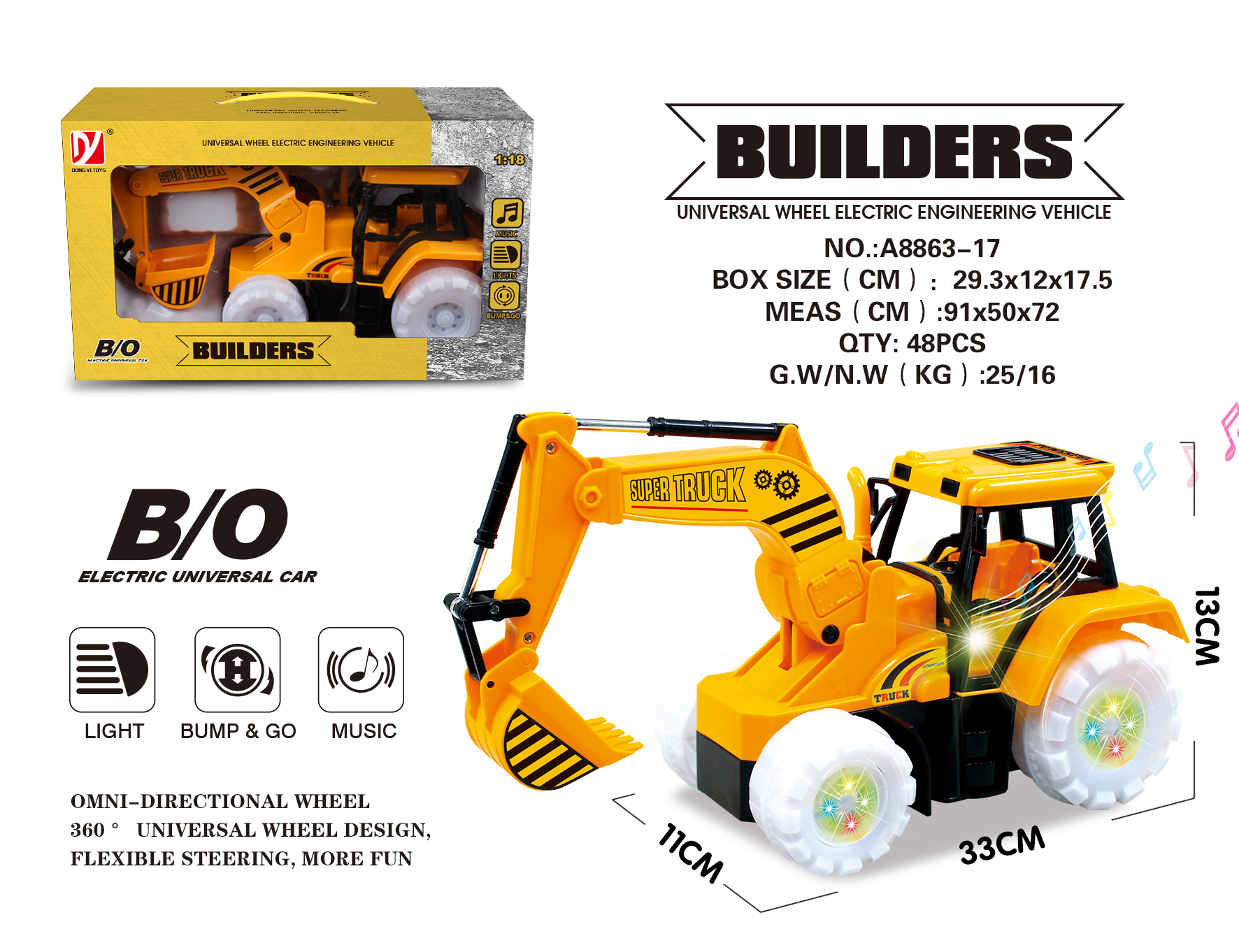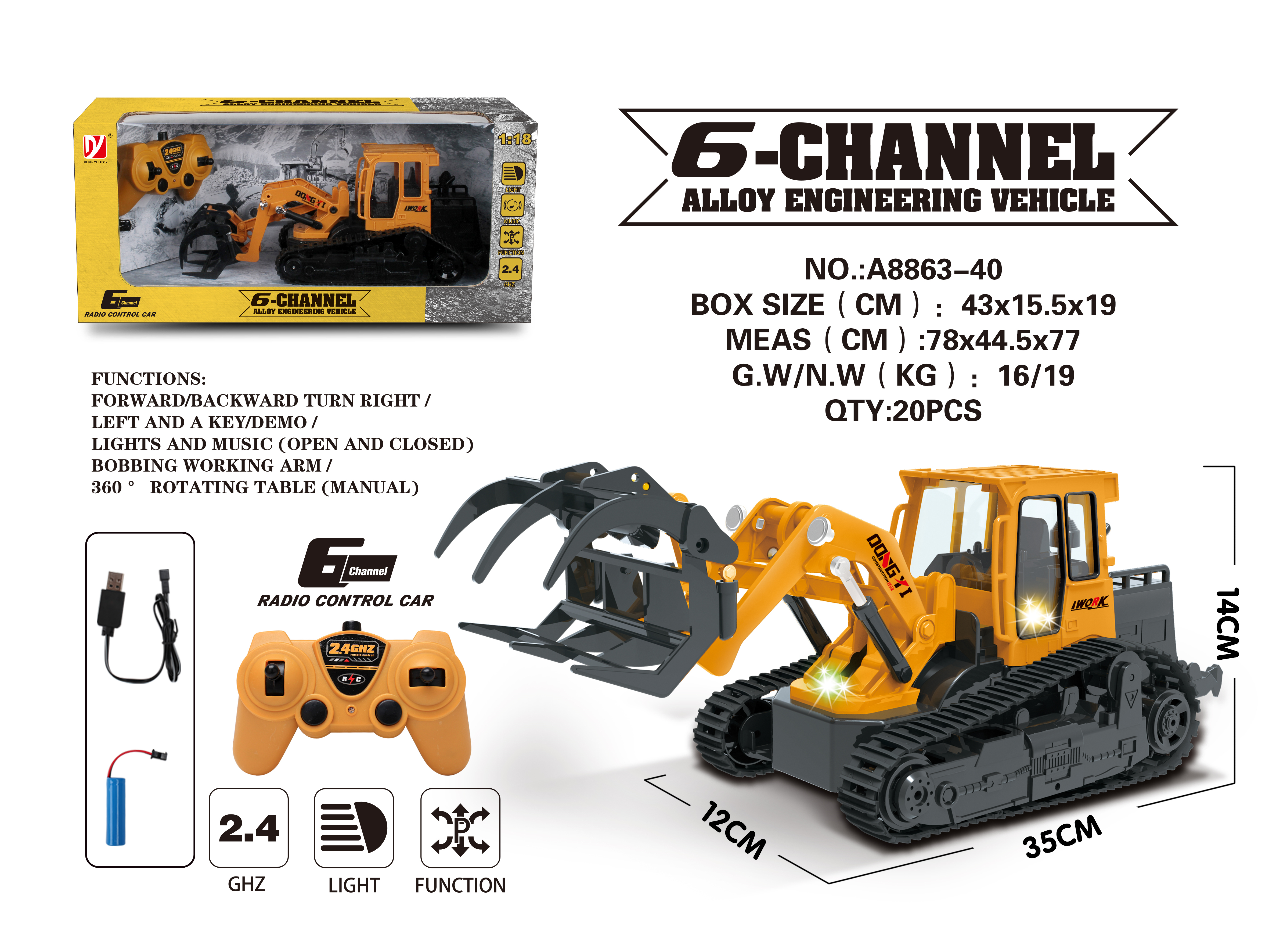 R/C Engineering Vehicle Funny Omni-directional Wheel Several Channels Real Engeering Simulated Light and Music ABS Flexible Steering toys