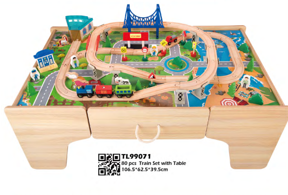 Colorful TL99071 Wooden Track Toy Set Baby training Non-toxic Wooden Toys with Creative Design size of 106.5X62.5X39.5CM, 80 pcs