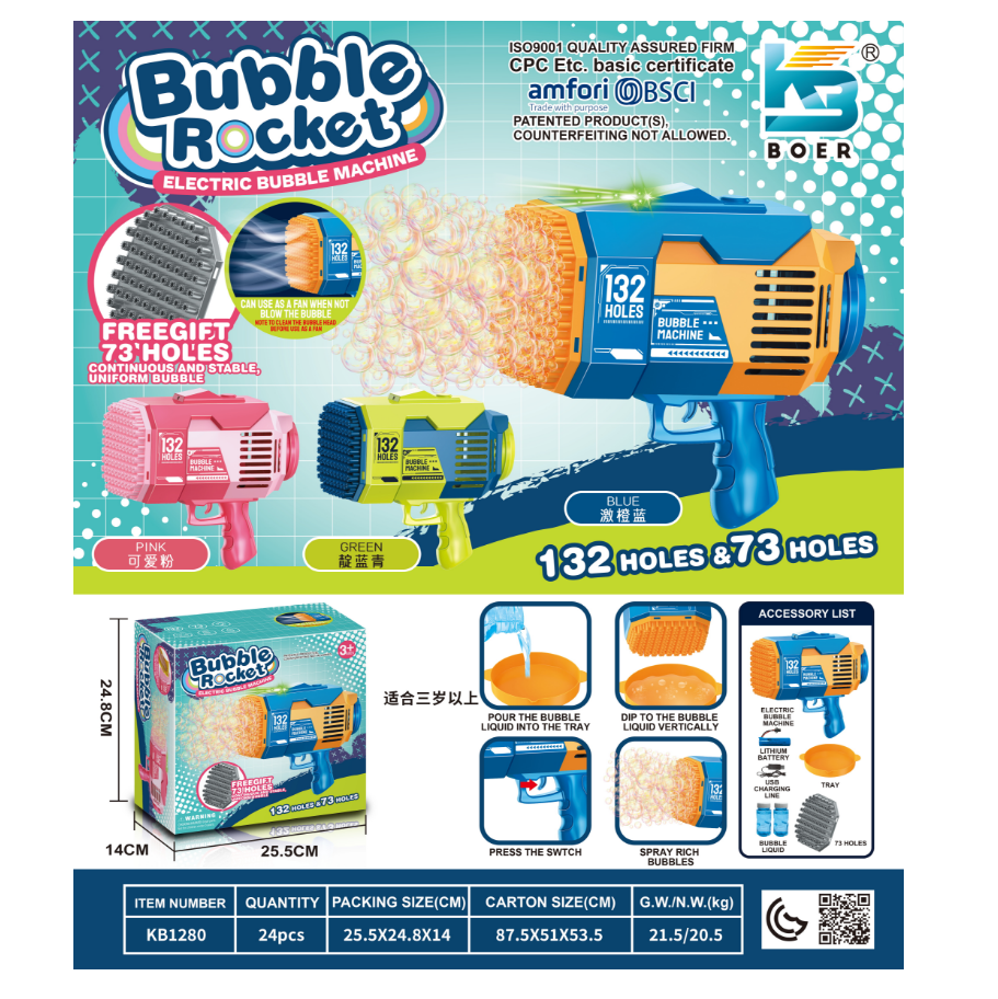132 Holes & 73 Holes Bubble Racket Electric Bubble Machine