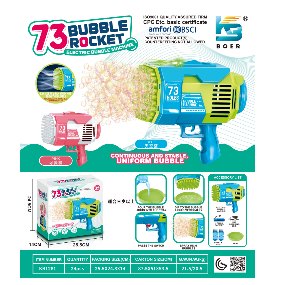 73 Holes Bubble Racket Electric Bubble Machine