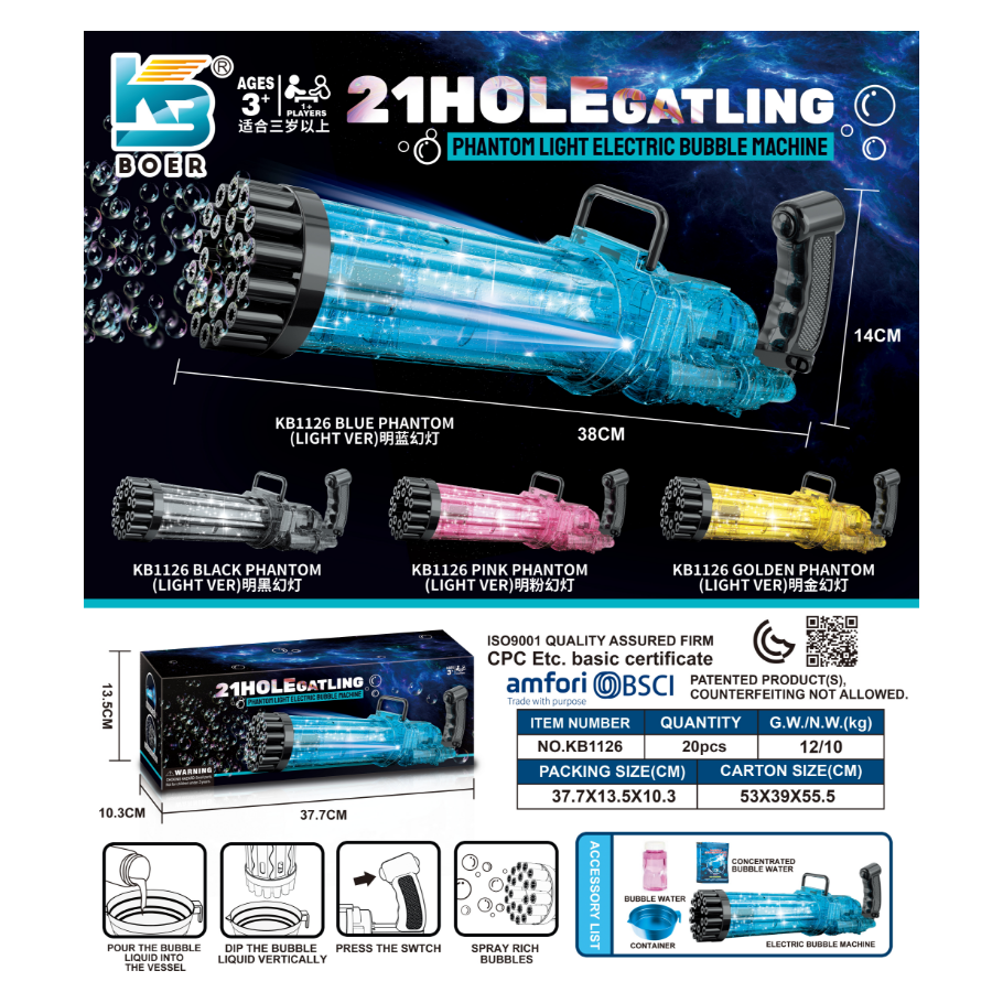 21 Holes Gatling Electric Bubble Machine