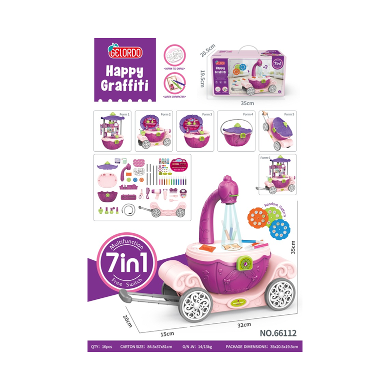 Play House - Accessories pull rod psychedelic carriage - with projection drawing board