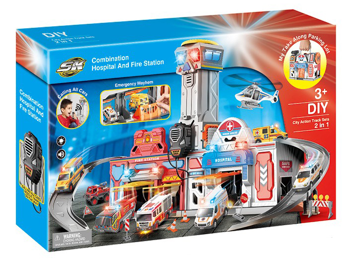 2 IN 1 GARAGE TRACK PLAY SET AND CARRY CASE(FIRE RESCUE+HOSPITAL)