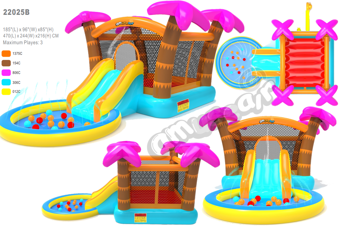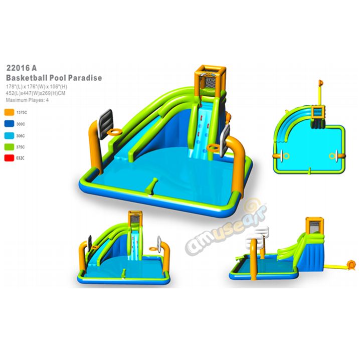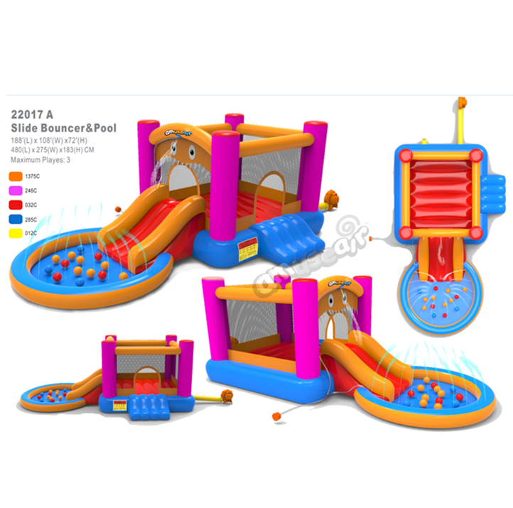 Inflatable Kids pool with trampoline/bouncer,slide and basketball court for wholesale