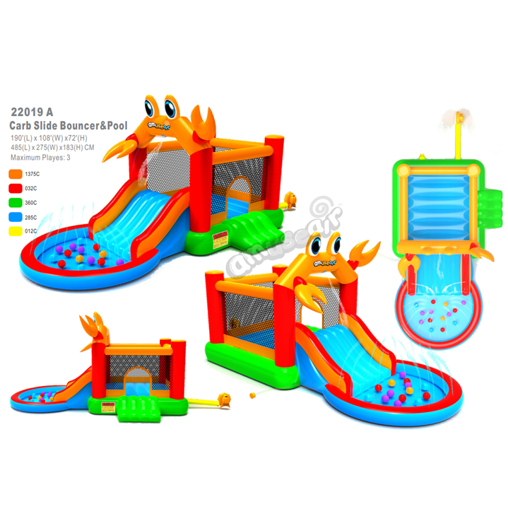 Wholesale Kids PVC Inflatable Crab-shaped Trampoline/Bouncer House with Slide and Pool