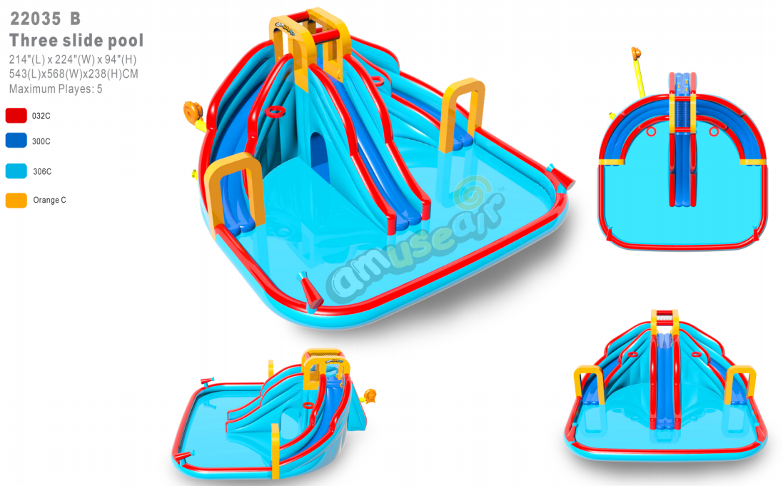 PVC Inflatable Kids pool with three slides for wholesale