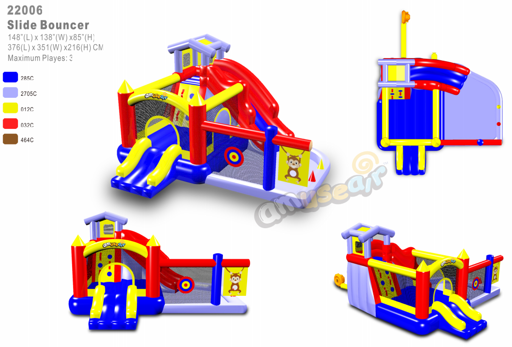 Inflatable Kids PVC trampoline/bouncer with Slide,basketball hoop for wholesale