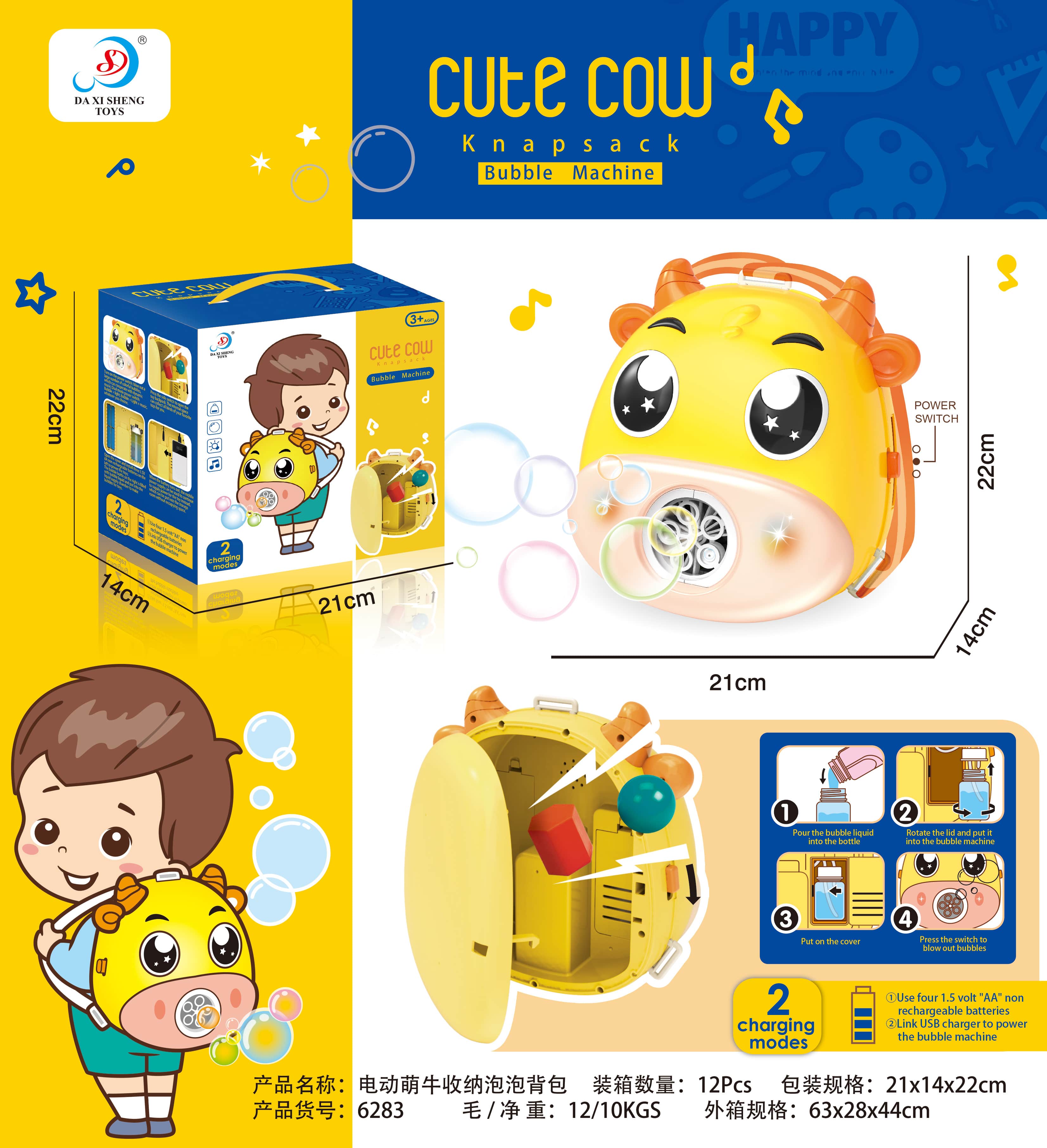 Cute Cow Knapsack Bubble Machine for whosale from China toy factory