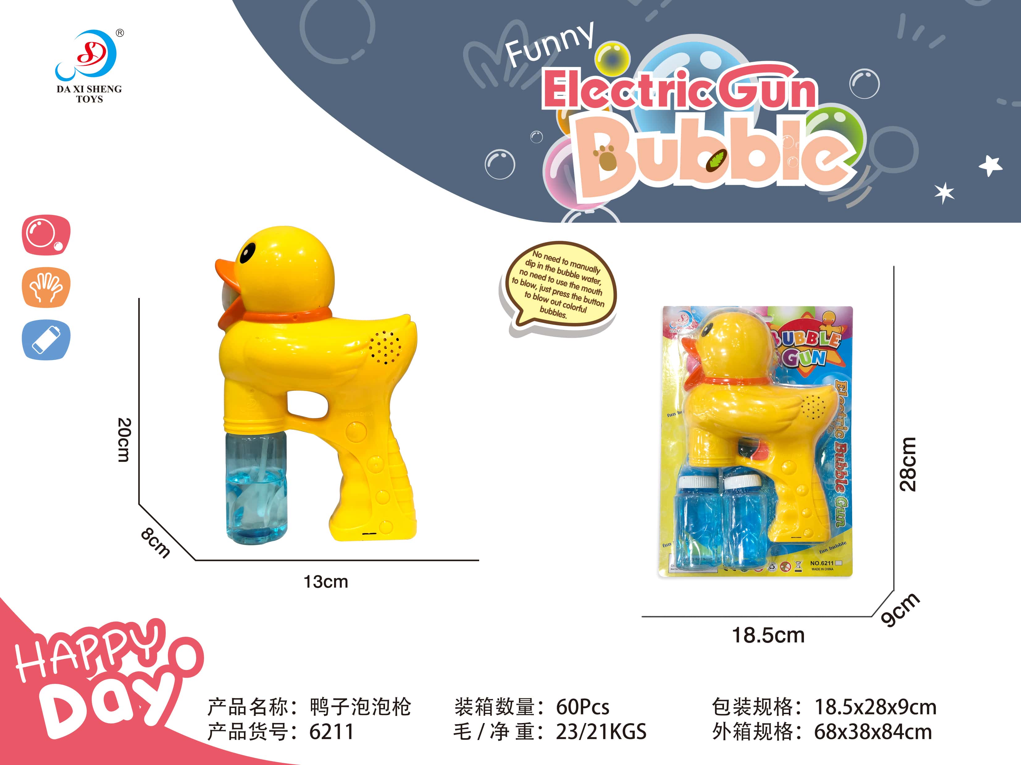 Yellow Electric Duck Bubble Gun for wholesale from China Toy Supplier