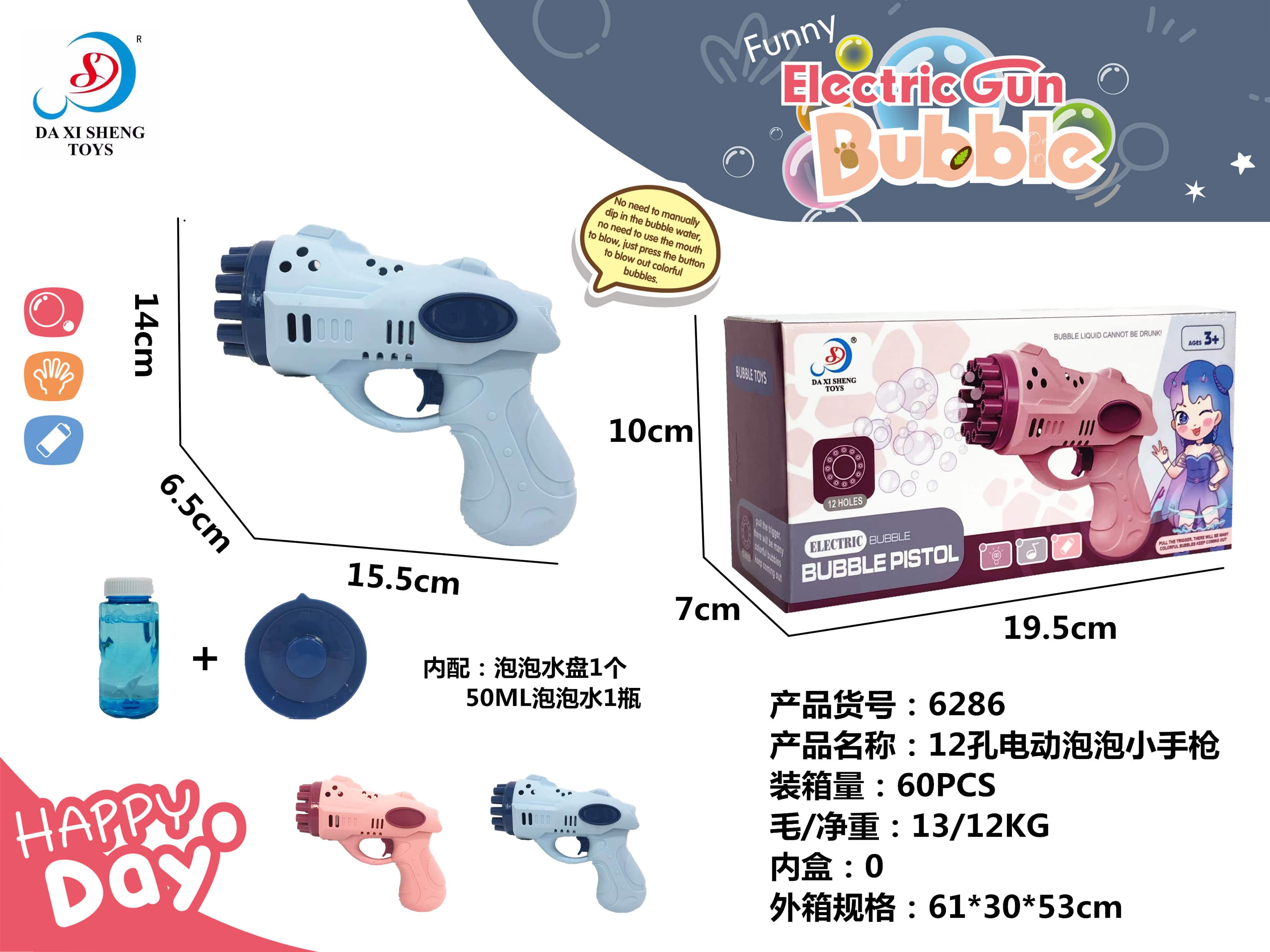 12-holes Electric Pistol Bubble Gun for wholesale from China toy factory