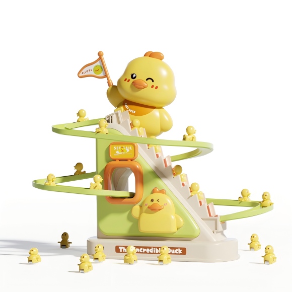 duck slide track toys set with Light, &music, flag waving,electric track, stair slide park, Upgrade music off function