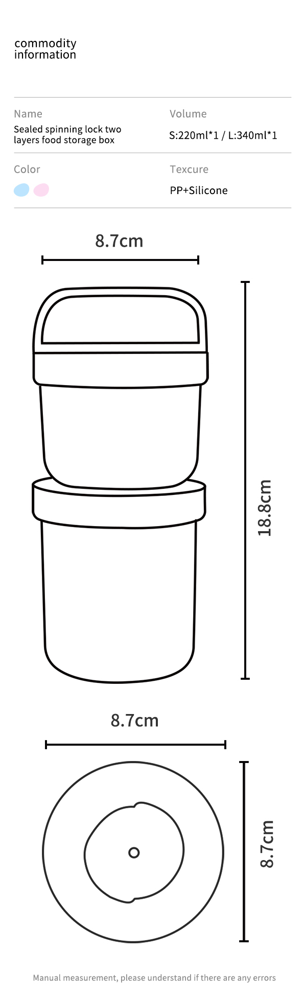 Capacity:S-220+L-340ML