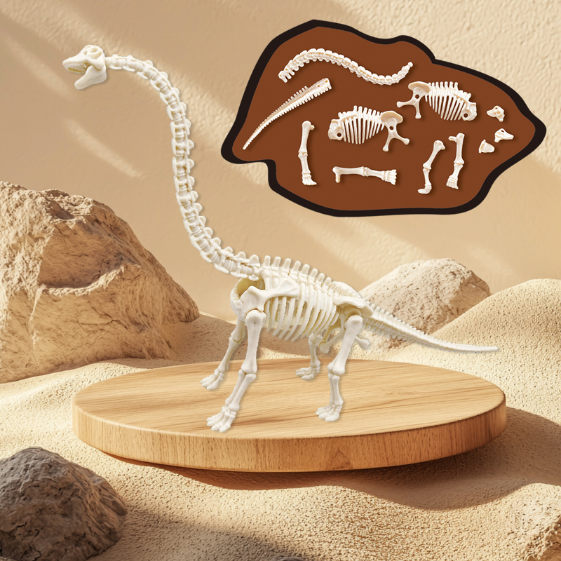 This kit blends "fun" and "education" seamlessly! The design of the Brachiosaurus bones accurately recreates its distinctive features: its astonishingly long neck, sturdy limbs, and unique skeletal structure. As children excavate and assemble the bones, they will naturally absorb knowledge about the Brachiosaurus' anatomy and lifestyle — instantly sparking their curiosity about prehistoric life and Earth's ancient history.