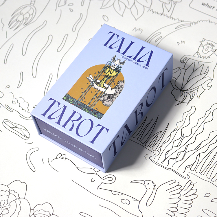 Inclusions & Design5. Complete set includes a tarot cards deck with custom blue - themed design: the box features soft blue packaging with “TALIA TAROT” branding and symbolic artwork, while cards have varied blue - toned hues (light blue, navy, etc.) with clear titles, illustrations, and detailed interpretive text.6. The card designs integrate classic tarot imagery (such as “The Lovers,” “Eight of Swords”) with a blue color scheme, ensuring visual appeal while maintaining traditional tarot symbolism.