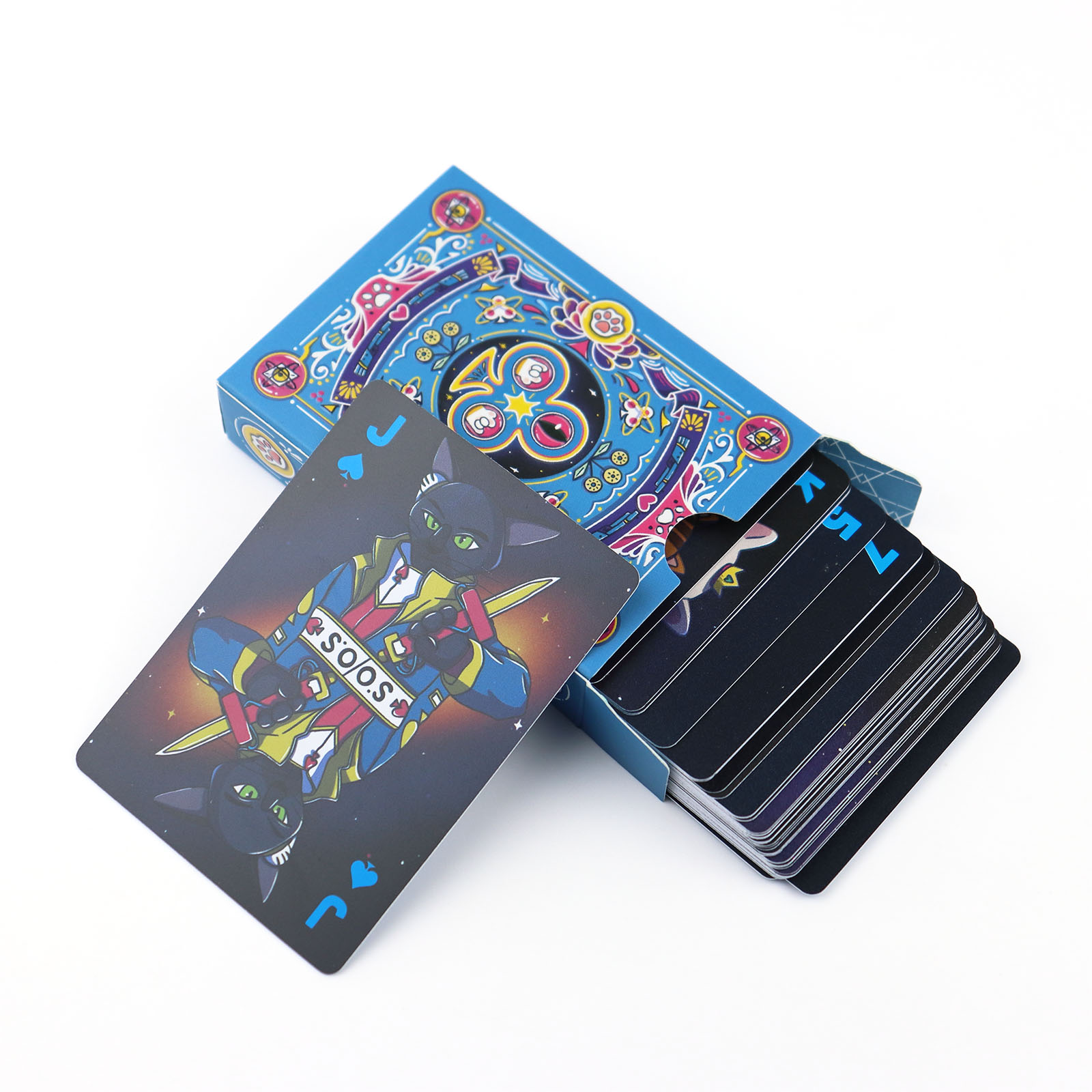 Application - Game Nights & Entertainment 1. Perfect for family game nights, friends’ gatherings, or party activities—bring a whimsical, fantasy - styled twist to classic card games (Poker, Solitaire, etc.) with the unique blue - black themed artwork. 2. Suitable for both casual players and serious card game enthusiasts, as the creative design enhances the visual enjoyment while maintaining standard card game functionality.