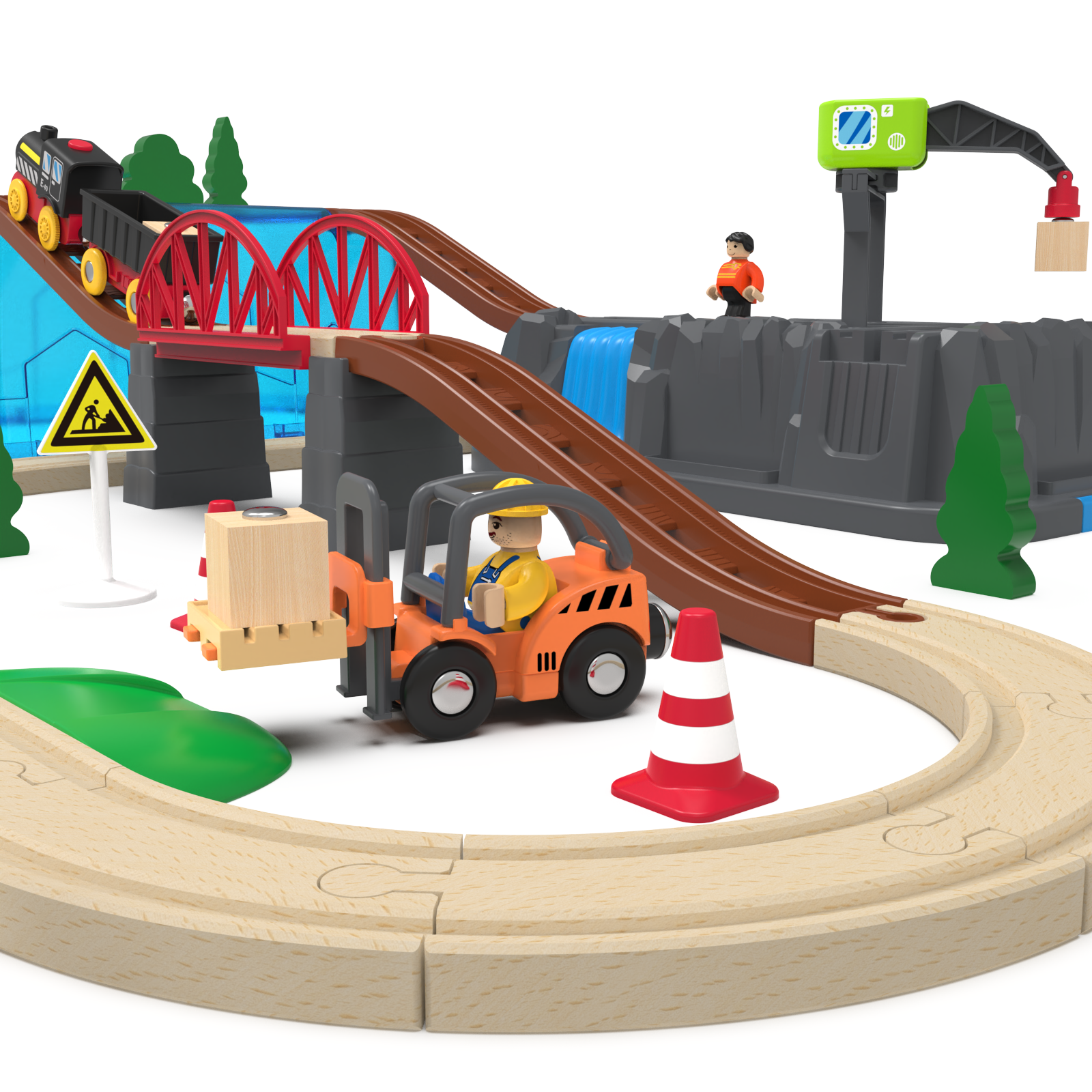 Article No.:94854 Set:Track Set package Number of pieces:56pcs Battery:1.5VAAA Packing rate:4pcs Net weight of product:1.78kg Trolley function:Forward, Priduct specification:90*80*20.5cm Coloe box style:E Corrugated coloe box Coloe box specification:34*24.5*22cm Outer box spencification:47.5*33*43cm