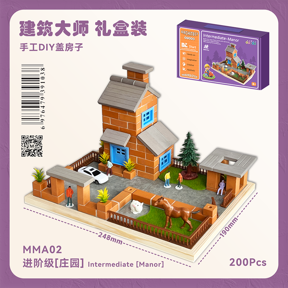 Architectural DIY building products: they miniaturely replicate the texture of brick and tile materials, simulate the real building process, and help develop hands-on skills and spatial thinking. The finished product is a miniature architectural scene that you make by hand and has a certain aesthetic appeal. It can also be used as a craft ornament.