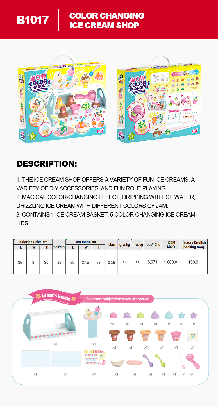Features fun ice creams & DIY accessories for role - playing.
