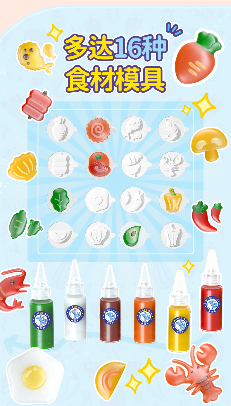 4. 16 food molds with recipe guide. Easy to follow, perfect for kids. Children can also DIY their favorite food shapes.