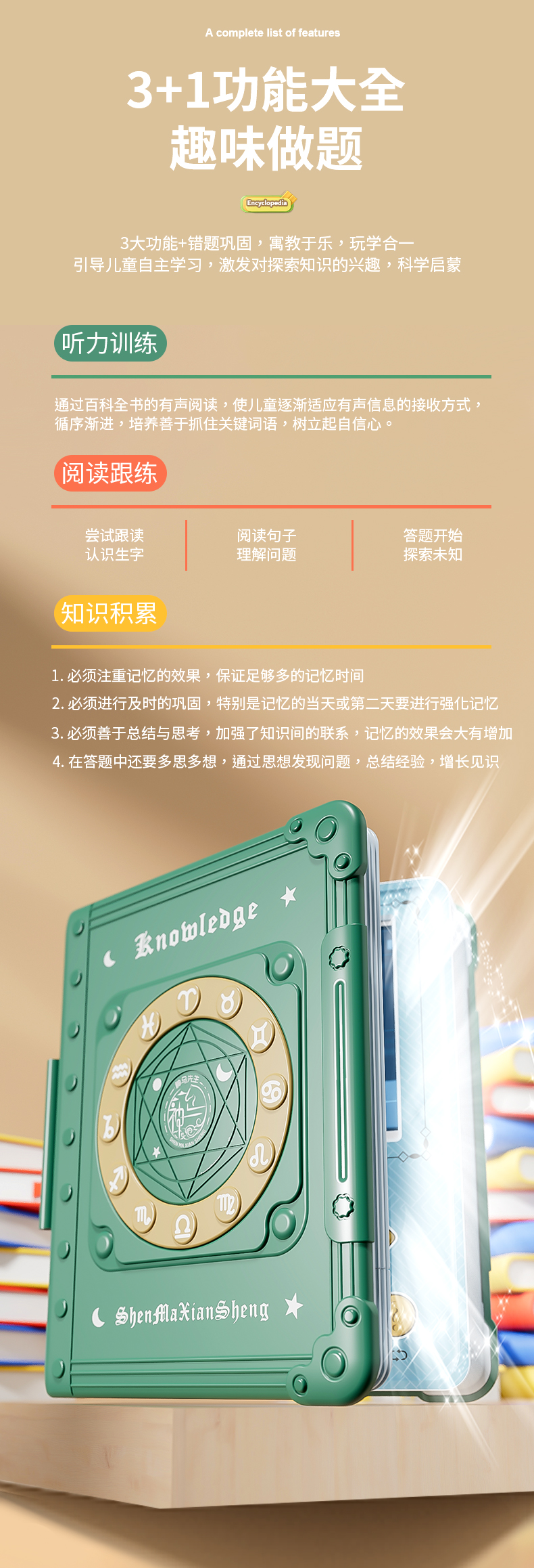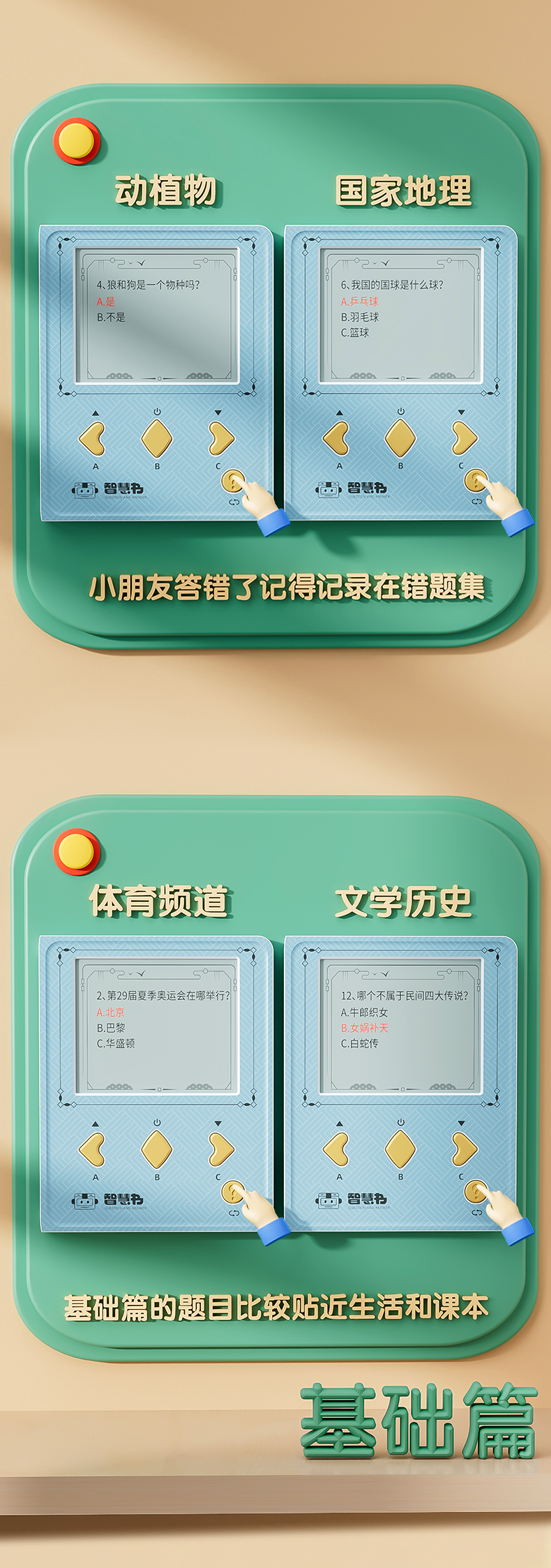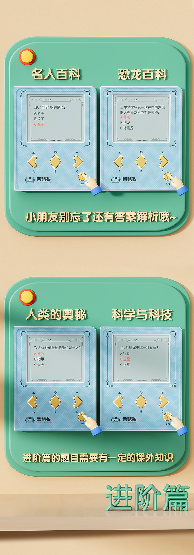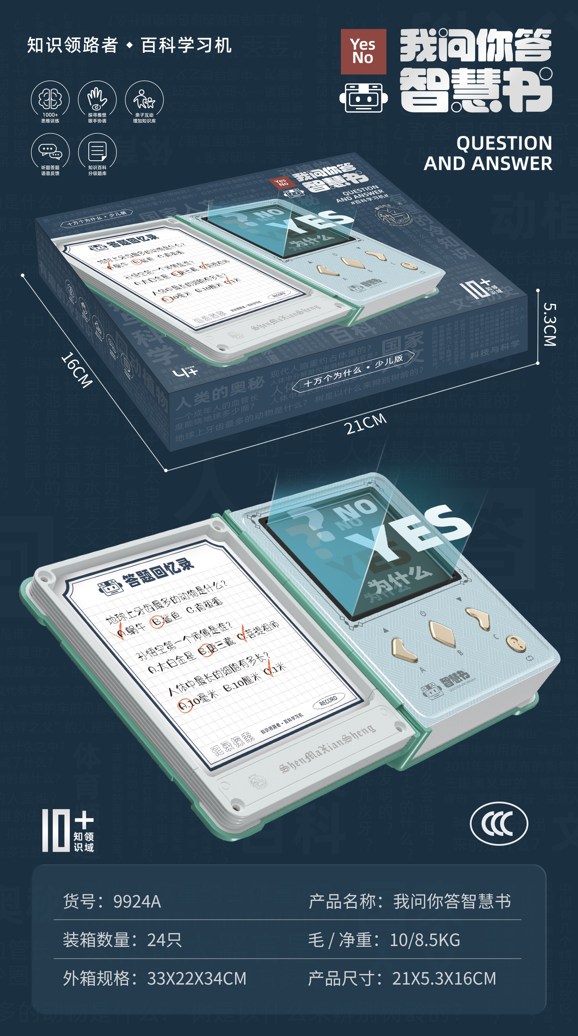 This product includes 1,000 multiple-choice questions across 10 categories. It aims to deliver fun extracurricular knowledge to children, sparking their interest and love for the unknown.