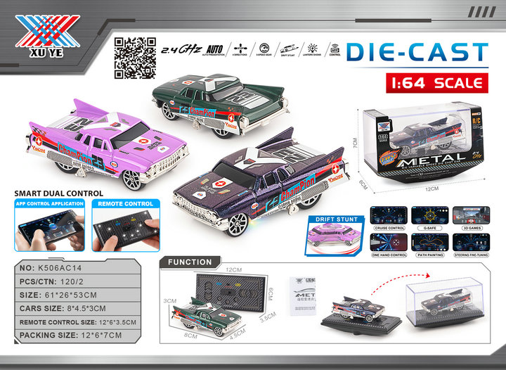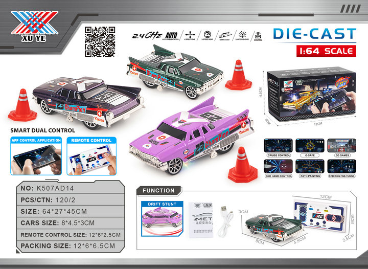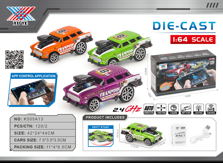 1:64 Alloy RC Variable Speed Drift Mini Classic Desktop Remote Control Car