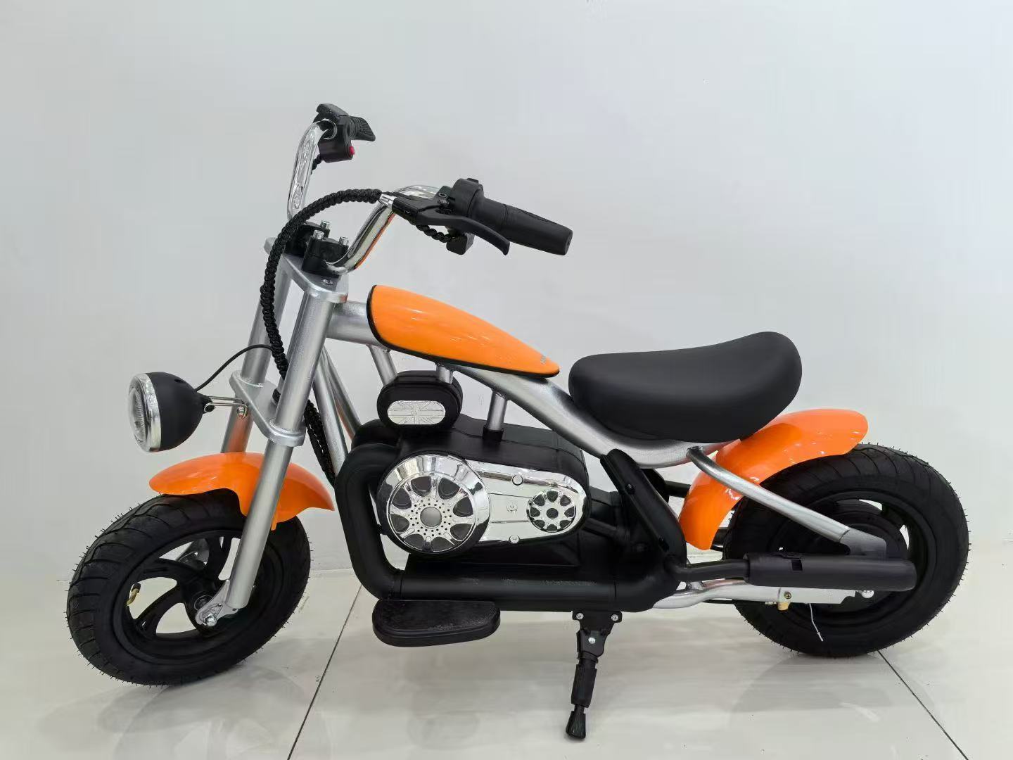 Brushless motor + 3-speed adjustment (8km/h 14km/h 20km/h) + one-key start + fuel tank storage compartment + authentic motorcycle exhaust sound + LED headlights + body lighting + manual twist throttle + 12-inch pneumatic tires + thickened seat + painted body + simulated dual exhaust spray