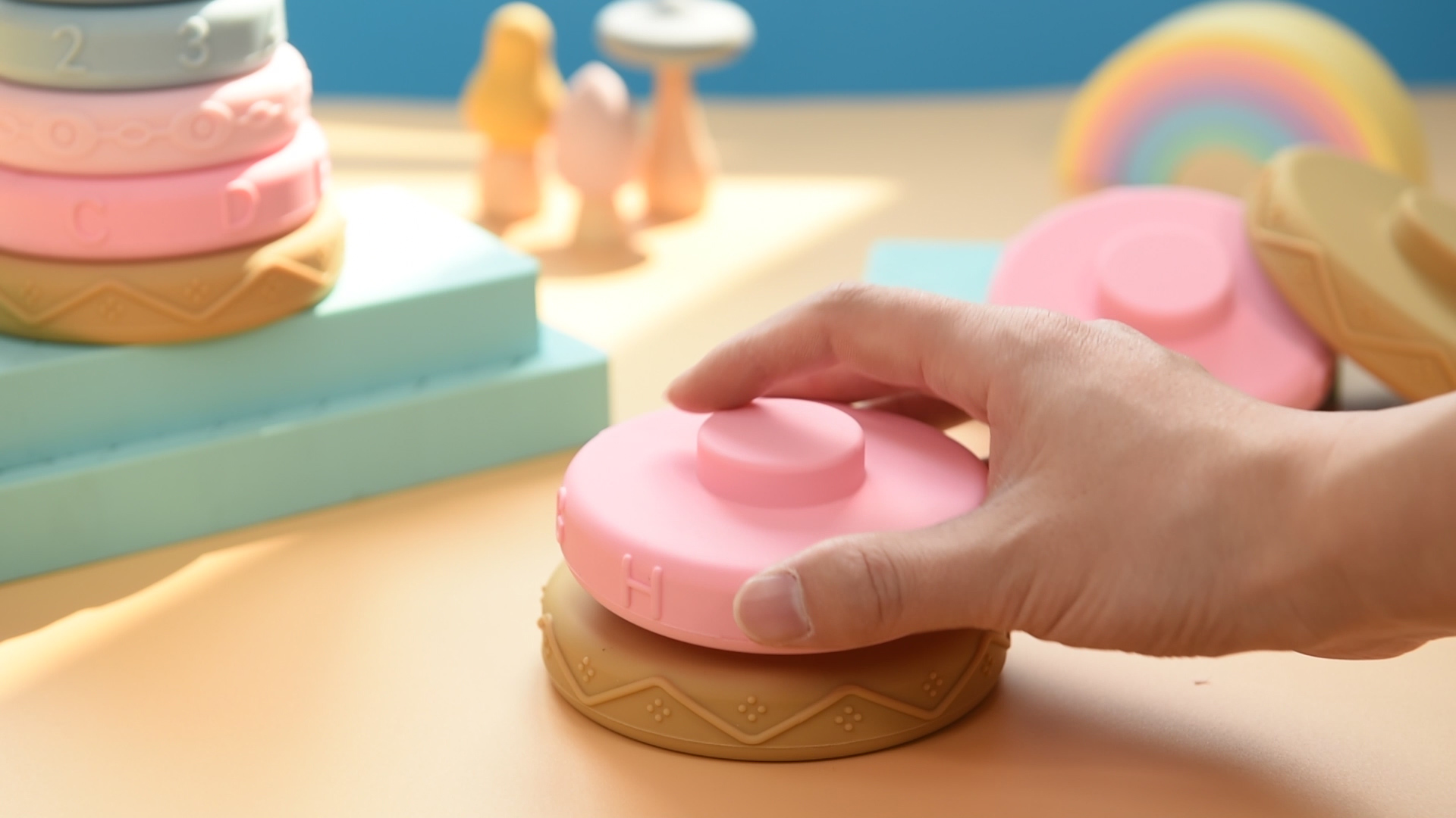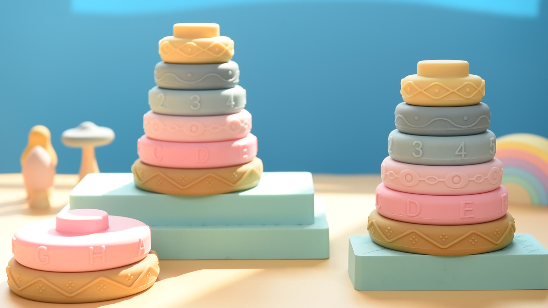 This silicone stacking toy is a multi-functional educational goodie designed for young babies: Crafted from food-grade silicone, it has a soft, skin-friendly texture, is shatterproof and collision-resistant, and safe and odorless even for babies to bite. The gentle macaron colors are eye-protective, and some styles integrate numbers, letters or non-slip textures for cognitive enlightenment during stacking and nesting. The fun play exercises babies’ fine motor skills, spatial awareness and logical thinking. With rounded, burr-free edges, it protects babies’ delicate skin. It serves as both an educational toy and a bath water container, taking up minimal space when stored for convenient home use and travel. A safe, practical and educational playmate for your baby’s growth.