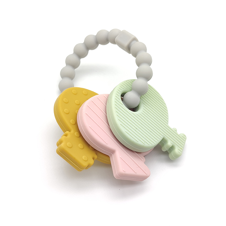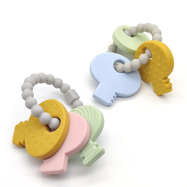 The cute key shape paired with soft colors not only attracts the baby's attention but also serves as a grasping toy, helping to exercise fine motor skills and grasping ability. The carefully designed concave and convex texture on the surface stimulates tactile development while massaging the gums, fully satisfying the baby's exploratory needs during the oral phase.
