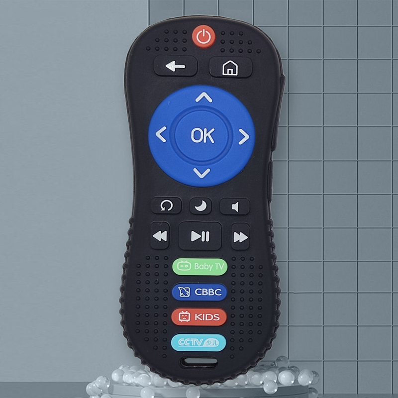 The simulated remote control-shaped teether is designed specifically for babies’ teething period, integrating teething relief, fun imitation and ability enlightenment. Made of food-grade silicone, it is soft, bouncy and odorless, gently fitting babies’ delicate gums to effectively relieve teething itching, pain and swelling, allowing babies to bite safely. It reproduces the remote control shape with colorful buttons, accurately fitting babies’ imitative nature and stimulating their curiosity. The delicate button texture can gently massage gums during chewing, combining teething relief with tactile development. The long, easy-to-grip design fits babies’ small hands, exercising fine motor skills and grip strength, with no small parts for extra safety. It supports high-temperature sterilization, is easy to clean and free of dirt, suitable for home and outdoor use, making it an ideal teething companion for babies.
