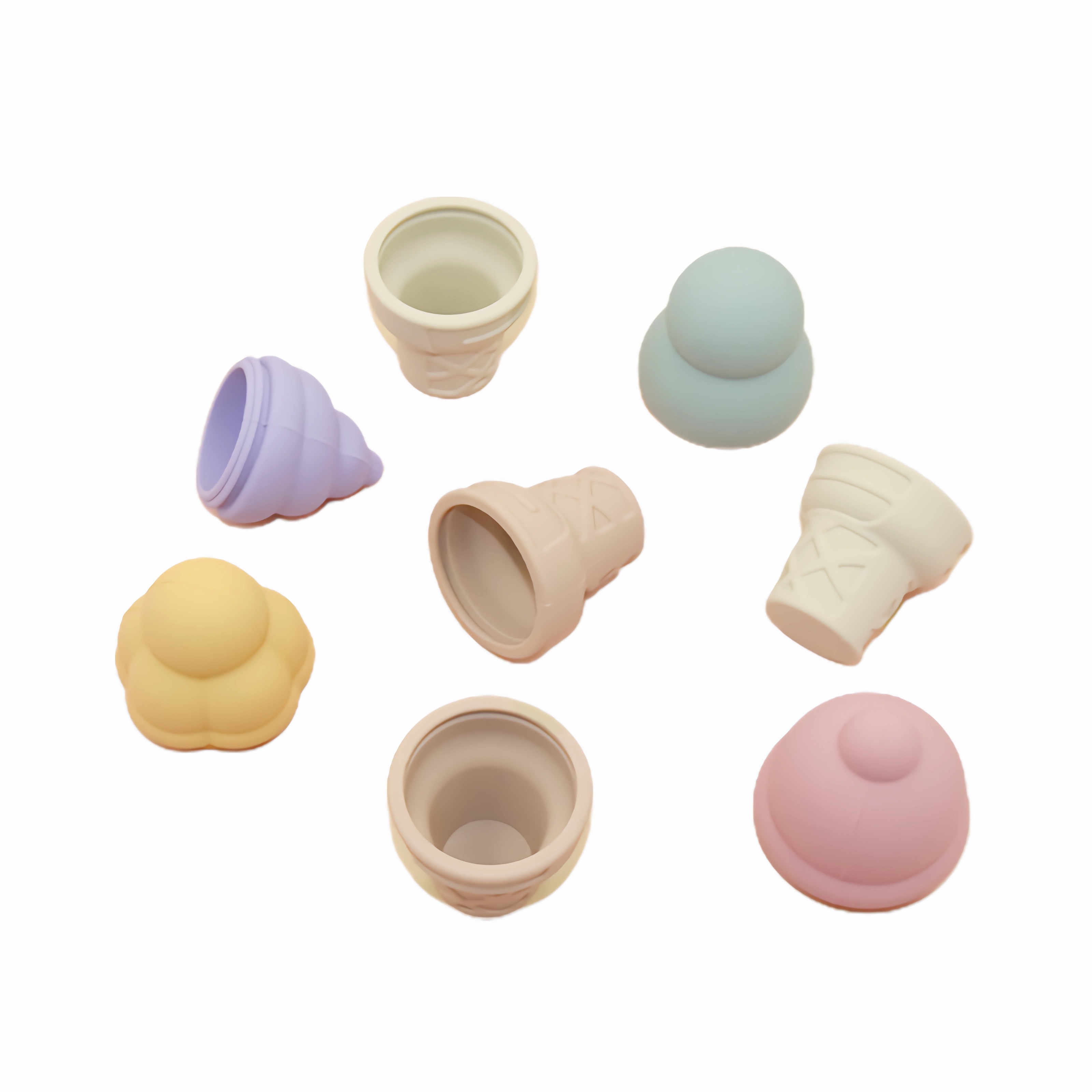 This silicone ice cream toy is made of food-grade silicone, safe and odorless, soft and skin-friendly, perfect for babies to grasp and chew. Featuring a realistic ice cream design with soft macaron colors, it stimulates babies' color recognition and imagination while doubling as a teether to soothe teething discomfort. The detachable structure allows for easy cleaning and storage, making it a high-quality early education toy that combines enlightenment and comfort, accompanying babies through joyful growth.