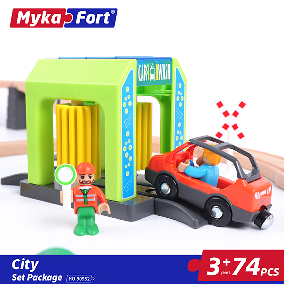 Colorful 90952 City Track set package Baby training Cognitive training Creative Design Wooden Toy with 74 PCS for kids above 3 years
