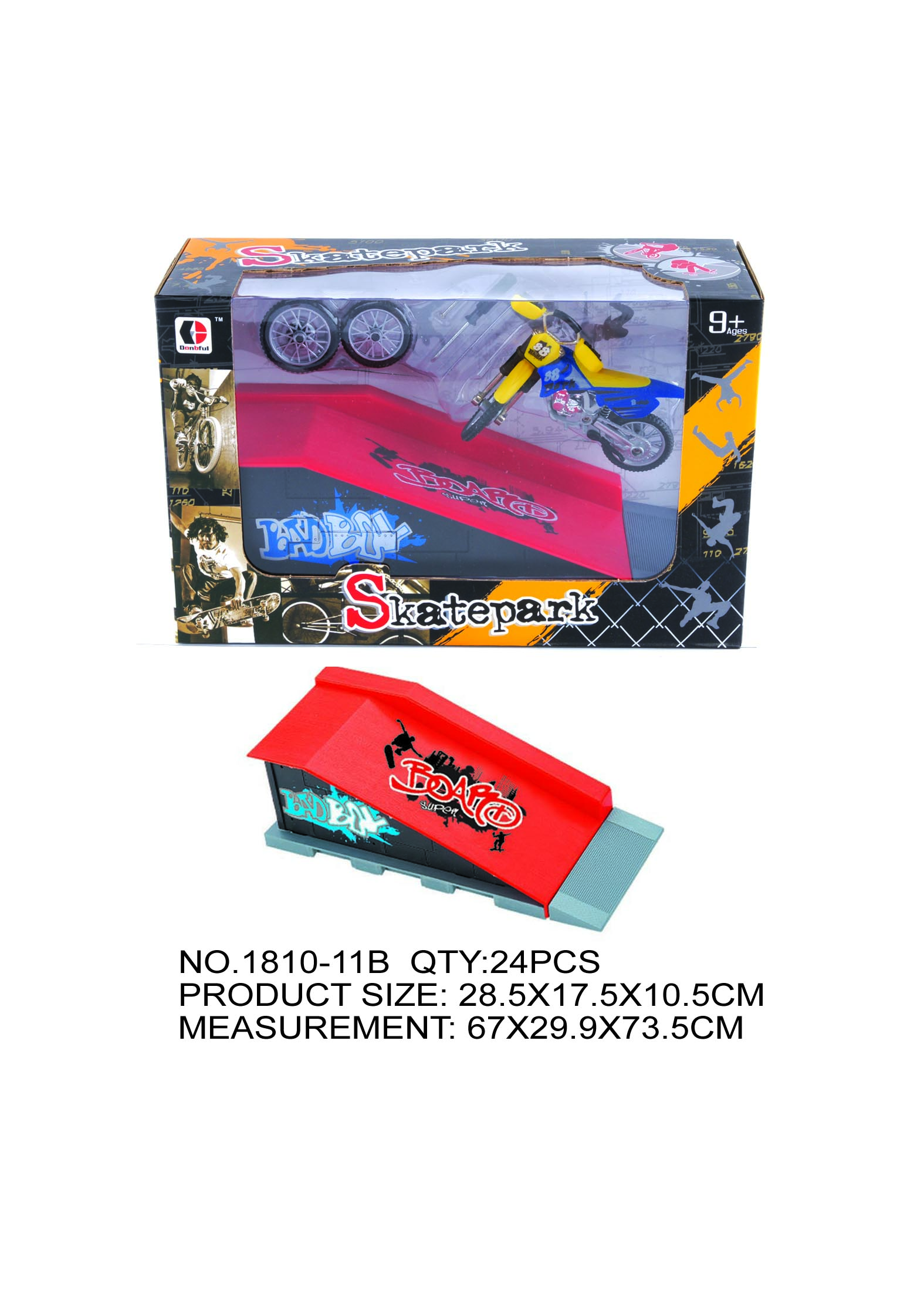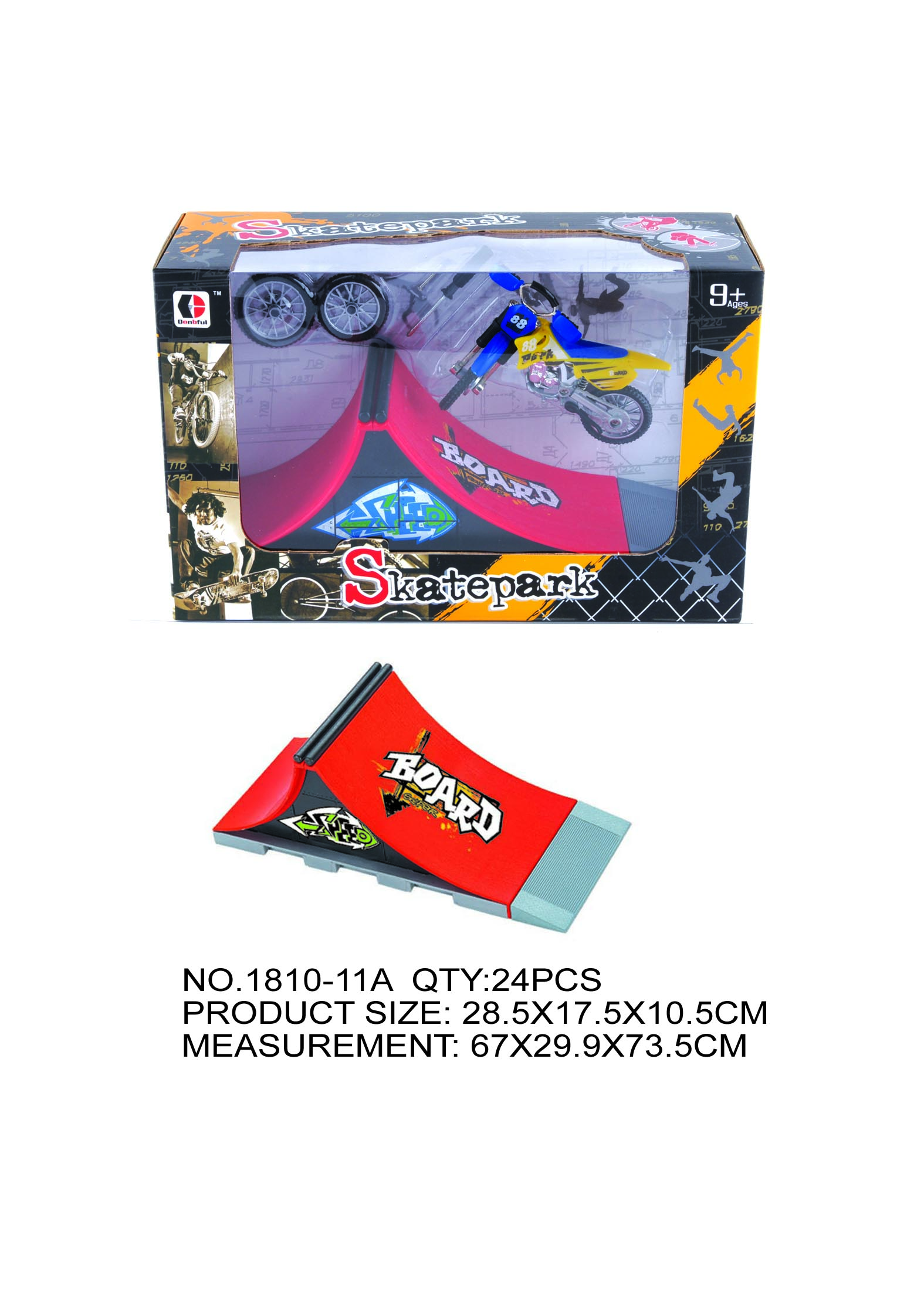 1810 Red Skate Ramp Skate Park Outdoor Sports Toy Set with Creative Design and Eco-friendly Material 64 Pcs