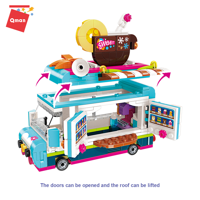 2022 newly released Qman Hot Drinks Van Model plastic material brick girl educational diy toy with classic baseplate wholesale from China toy factory