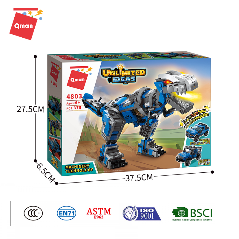 2022 newly released Qman 3 In 1 Machinery Technology deformation dinosaur combination car bricks toy building blocks wholesale from China toy factory