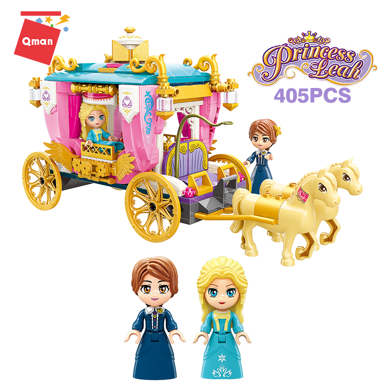 2022 newly released Qman Royal Parade Horse Carriage Building Blocks Girl Princess Leah Series Toy wholesale from China toy factory