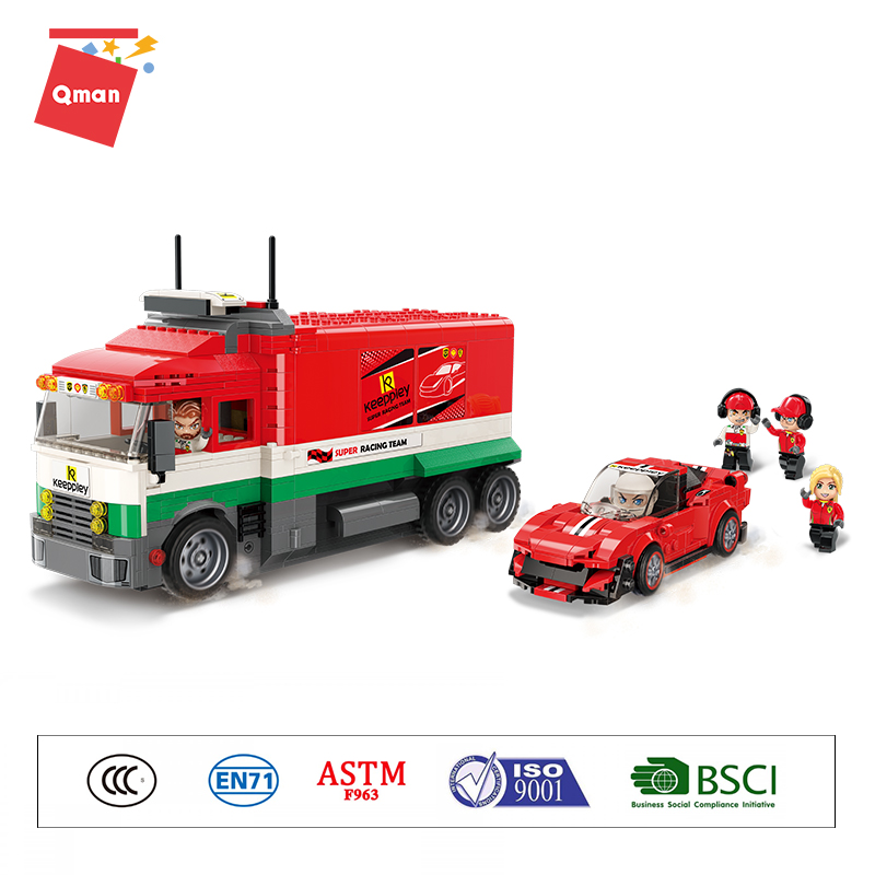 2022 newly released Qman Big Truck Transform Mobile Pit 1095 pcs Building Blocks Racing Car Toy outdoor building block wholesale from China toy factory