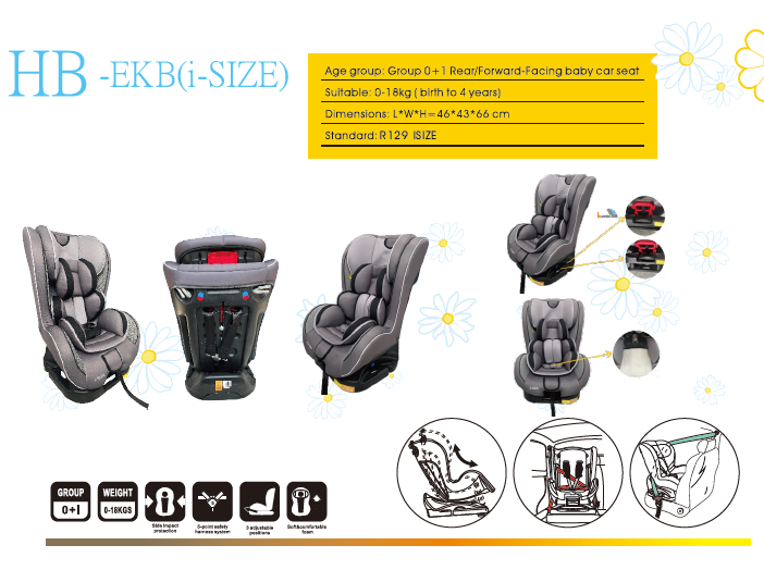 HB-EKB Gr.0+1 rear/forward-facing baby car seat 0-18kgs for children ages 0-4 years wholesale from China factory