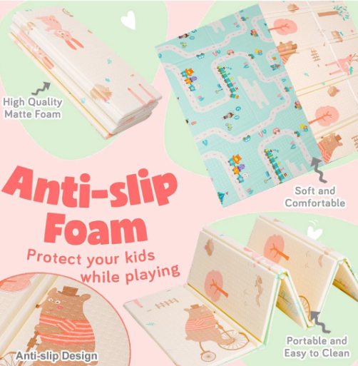 Foldable Baby Play Mats with Reversible Double-Sided Non-Slip XPE Foam for kids wholesale from China toy factory