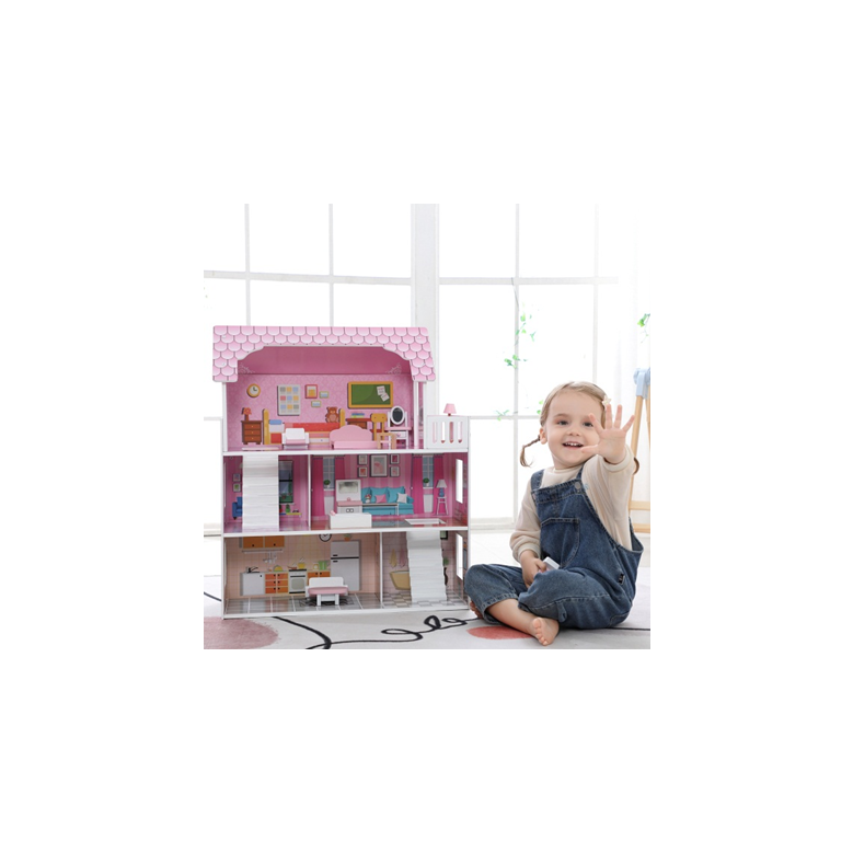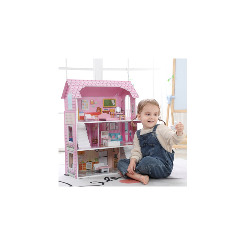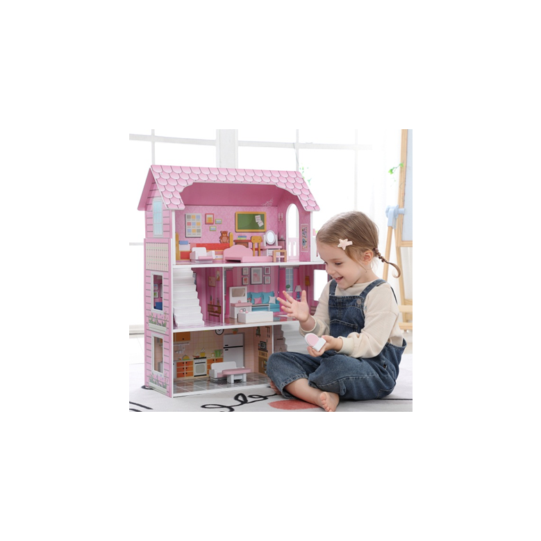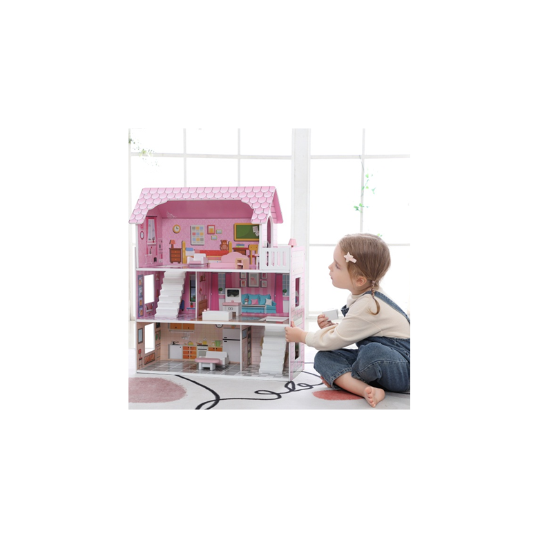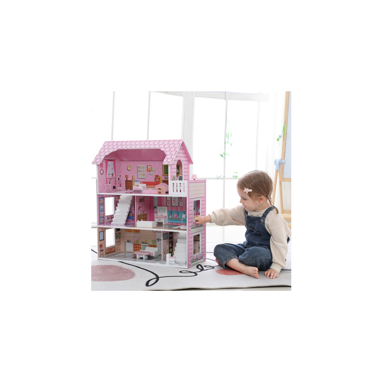 Pink deluxe dollhouse with 10pcs accessary