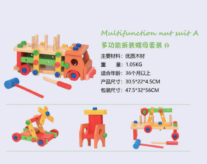 - Colorful Multifunction Nut Suit C DIY Assembly with Creative Design Educational wooden toys 23.5X15.5X28.5CM for kids above 3 years - 500 Pices Min.Order Enquire Now